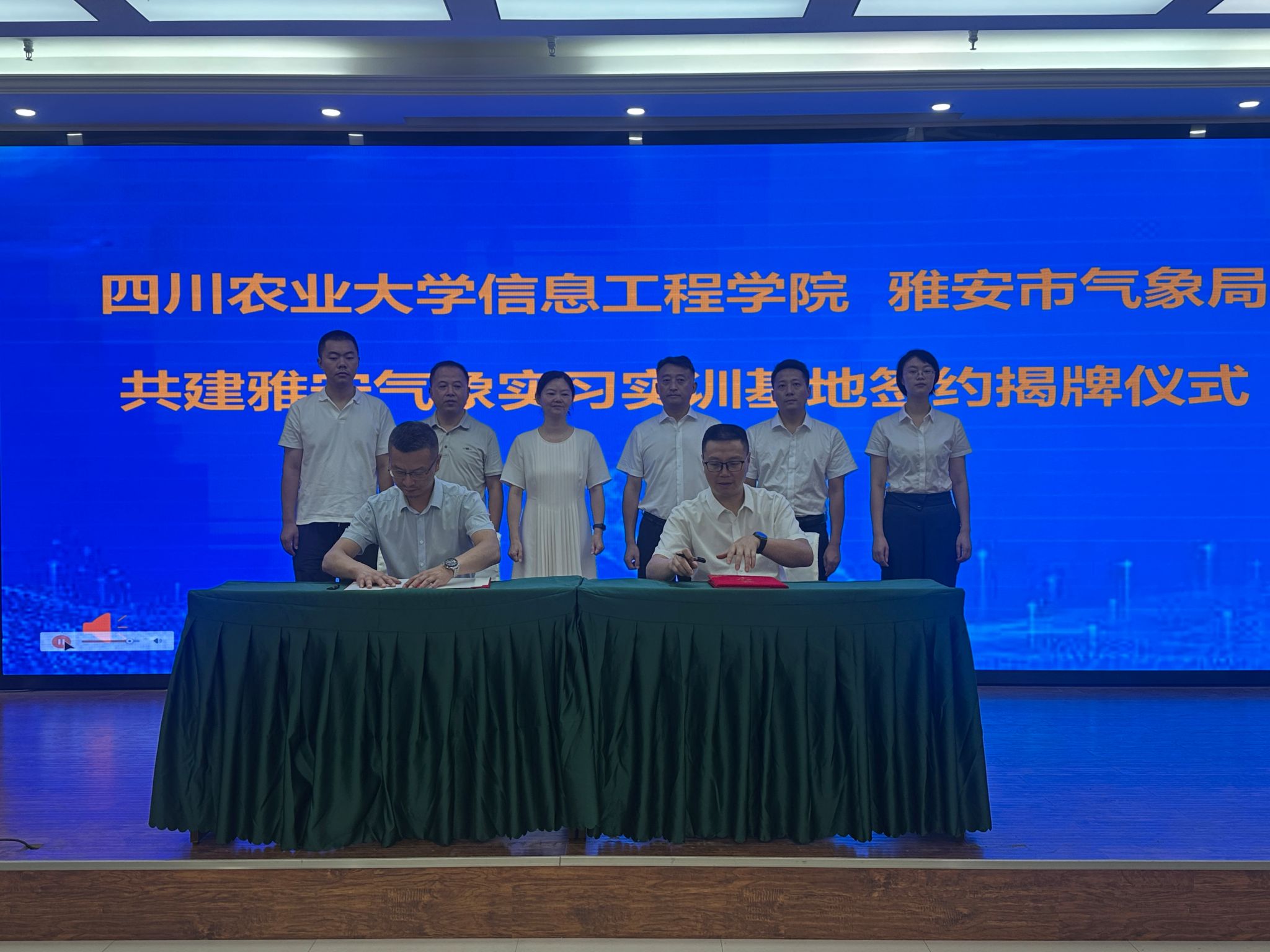 7月25日,学院与雅安市气象局共建“雅安气象实习实训基地”签约揭牌仪式在雅安市气象局隆重举行。学院院长穆炯、副院长李军、雅安市气象局局长赵恒刚、副局长李光伟等相关工作人员出席仪式。